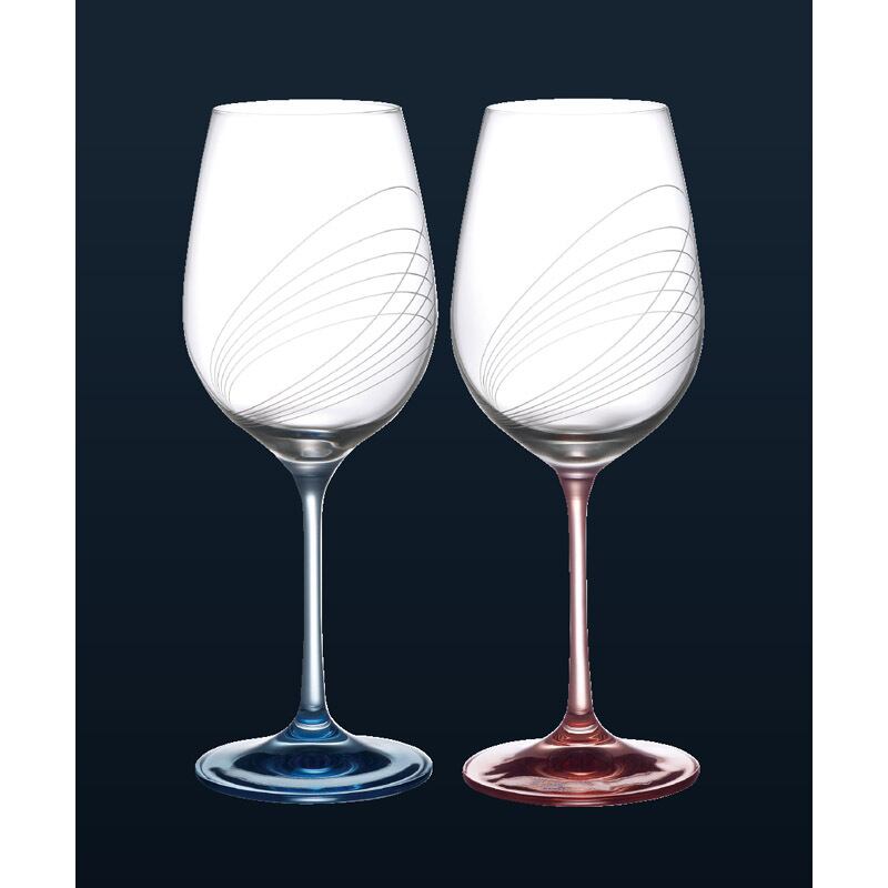 ステム(脚)にピンクとブルーのさわやかなカラーが入ったボヘミアのペアワインです。