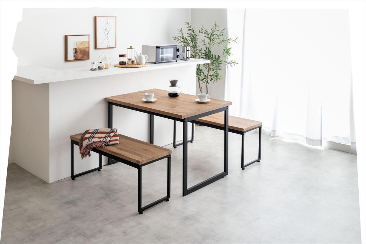 【3点セット】Moku 幅110cmダイニングテーブル+ダイニングベンチ2セット