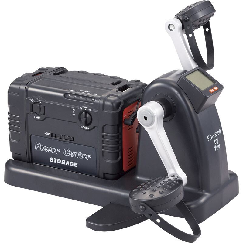 まわしてチャージ 充電丸PROは、自分の手足で漕いで充電できる自家発電機です。