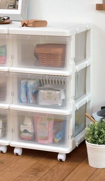 ●中が見えて整理しやすいクリアと、中が見えないので急な来客でも困らないホワイトの2タイプです。