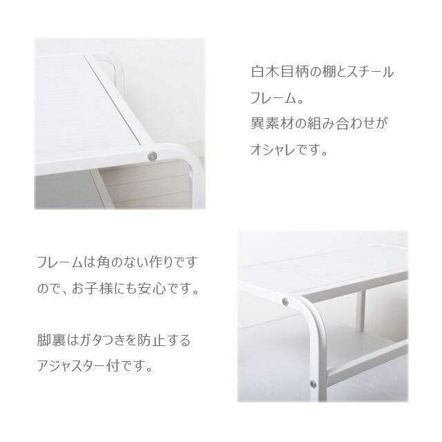 ◆白木目柄の棚とスチールフレーム、異素材の組み合わせがおしゃれです。