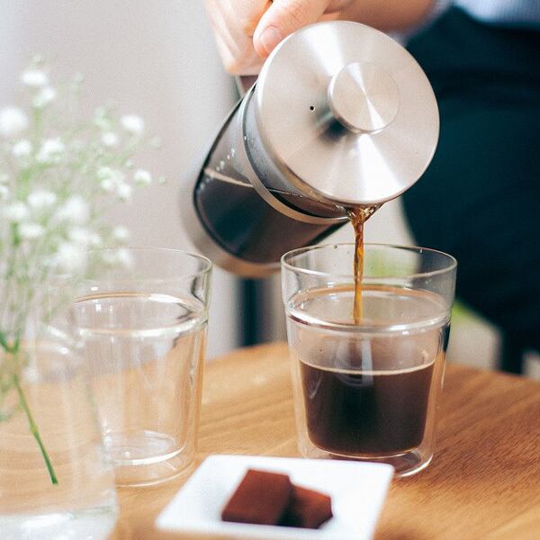 〇オールステンレス製のプレス式コーヒーメーカー。