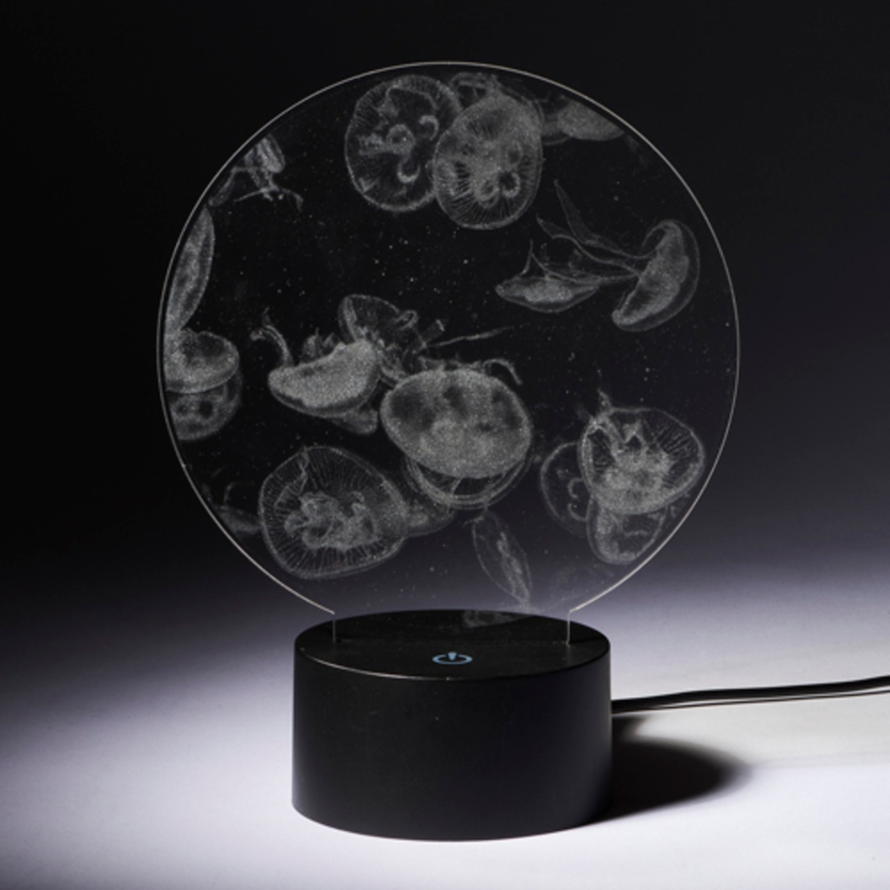 リアリティのあるくらげが優雅に浮遊する様子を7色のネオンで照らしだす、テーブル時用の水族館。