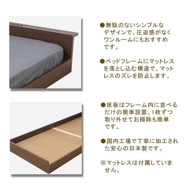 ◆ベッドフレームにマットレスを落とし込む構造で、マットレスのズレを防止します。