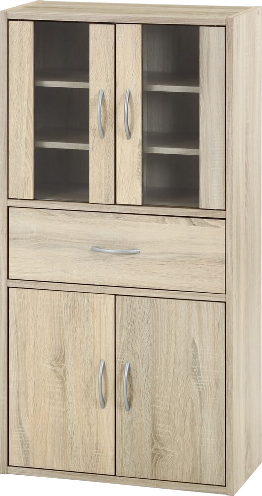 ○表面材:プリント紙化粧繊維板 ○扉部:ガラス ○取っ手:プラスティック