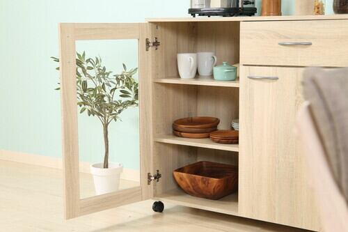 ホワイトウォッシュのカラーなので、お部屋のインテリアにも合い、キッチン収納としてだけではなく、リビングや書斎にも置けるデザインです。