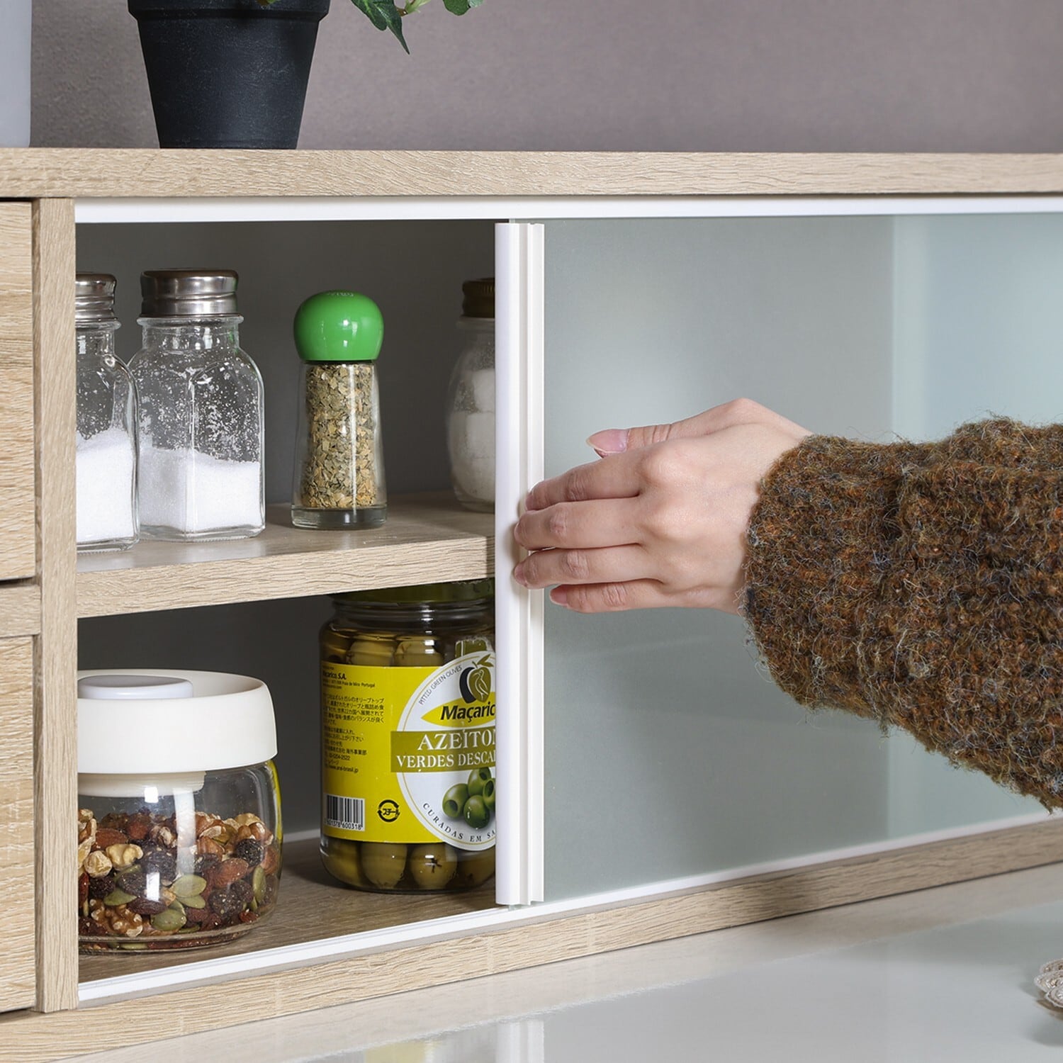 ガラス扉と引き出しは両側から開け閉めできるので、スムーズに食事の準備ができます。