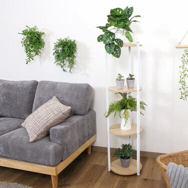 お花や小型の観葉植物をよりおしゃれに楽しむことができるディスプレイラックです。植物と相性のいいスチール×木目のデザインで、インテリアによく馴染みます。