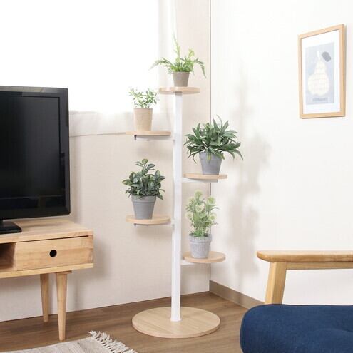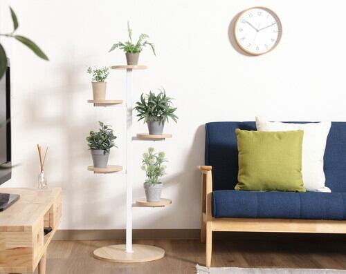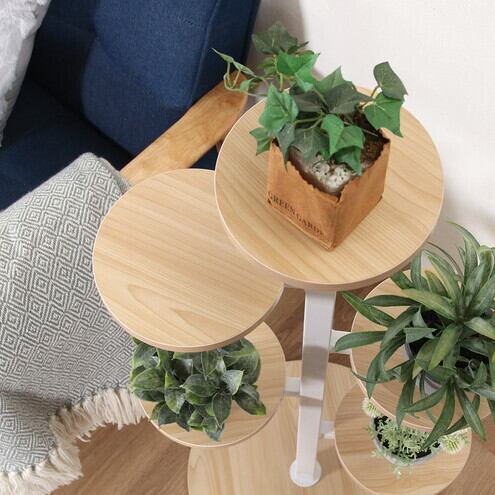 お花や小型の観葉植物などよりおしゃれに楽しむことができるディスプレイラックです。植物と相性のいいスチール×木目のデザインで、インテリアによく馴染みます。