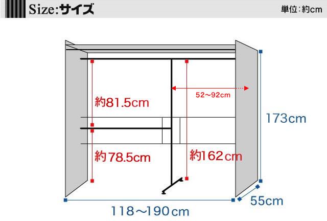 ●サイズ:(約)幅118~190×奥行55×高さ197cm