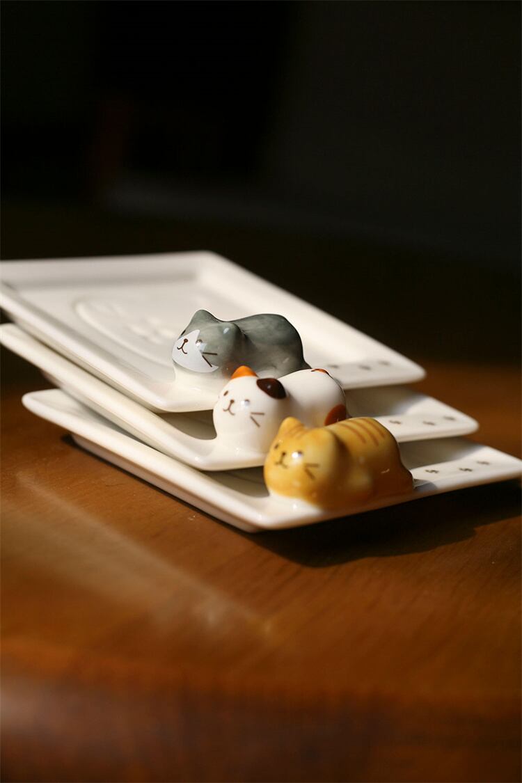 立体的な猫に皿の底の猫の顔のレリーフを組み合わせ。